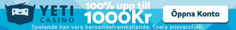 18+ Endast nya medlemmar. Omsättningskravet för din Yeti bonus är x40 och du har total 60 dagar på dig att uppfylla omsättningskravet. Villkor gäller; Spela ansvarsfullt, stodlinjen.se, spelpaus.se. Läs fullständiga regler och villkor här
